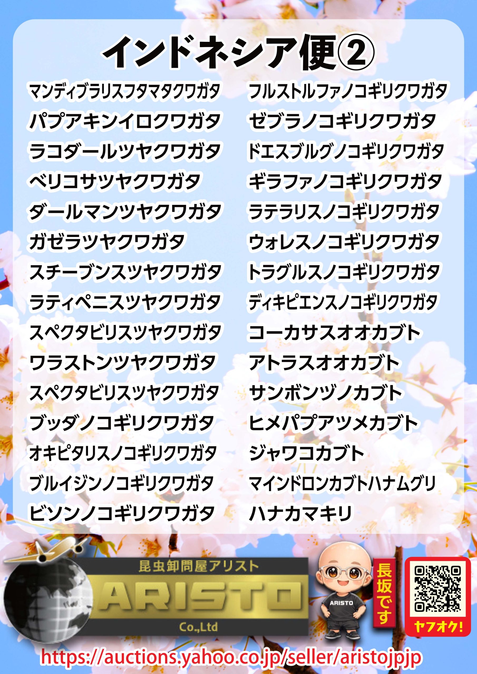 2026年3月12日新着分/入荷リストです。昆虫販売アリスト | 外国産 昆虫 クワガタ カブトムシなどの専門店 昆虫ショップ アリスト